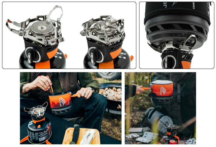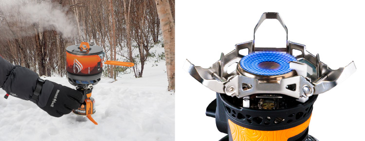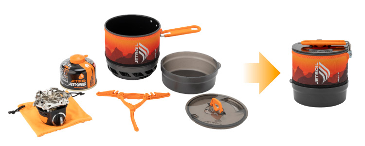 山やキャンプで大活躍のジェットボイル®は、お湯を素早く沸かせるだけではありません。調理に適したモデルのほか、オプションのクッカーやフライパン、付属のゴトクとの組み合わせで、煮込む、炒める、蒸す…と、調理の幅が広がります。